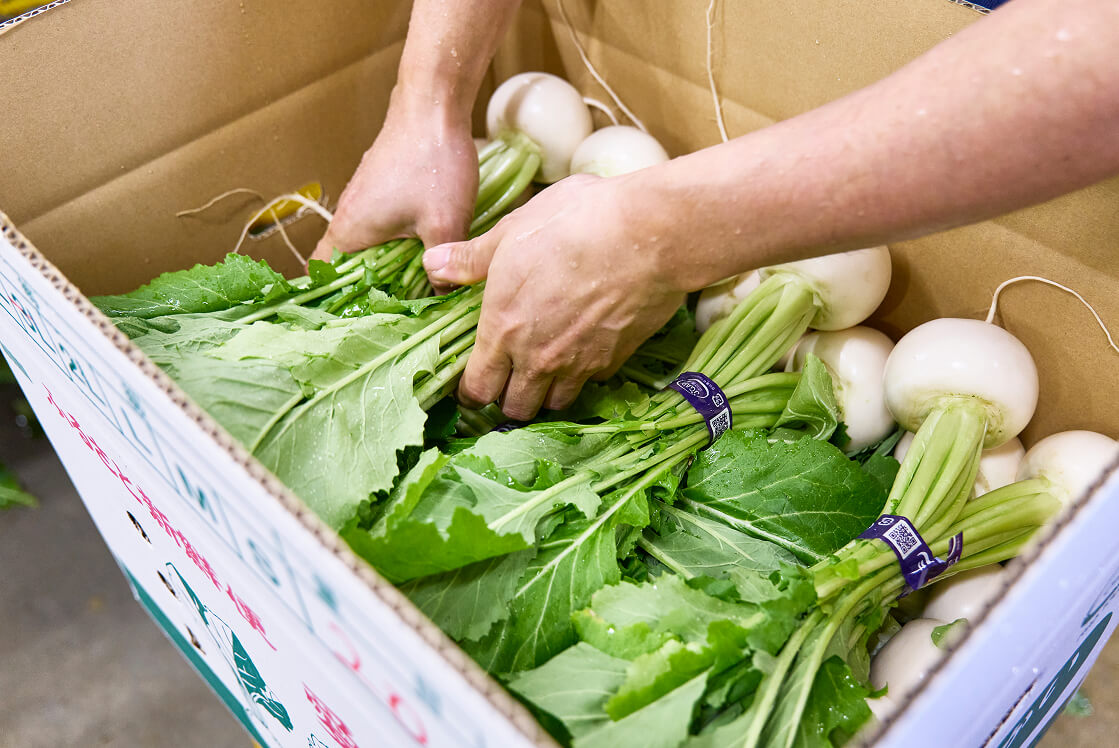 ヤマヨシは「日本一美しいかぶ」を目指し、丁寧な荷作りと洗浄作業を心がけています。